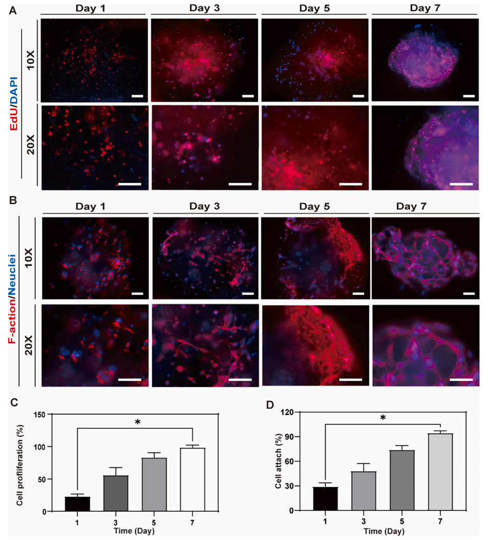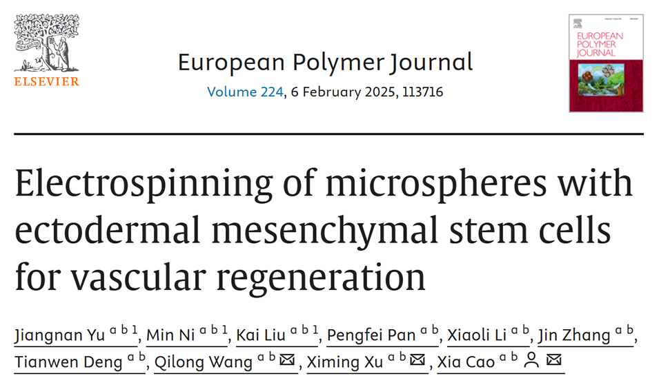 血管组织工程(VTE)旨在通过生物材料、细胞和生长因子构建功能性血管结构以治疗血管疾病。近期,江苏大学药学院徐希明教授、曹霞副教授、王启龙等人通过静电喷雾技术制备了负载外胚间充质干细胞(EMSCs)的GelMA水凝胶微球,该微球具有均匀尺寸、高孔隙率及可控降解性,能有效促进EMSCs黏附、增殖并分化为内皮细胞,在体内外均展现出良好的血管再生能力。相关研究以“Electrospinning of microspheres with ectodermal mesenchymal stem cells for vascular regeneration”为题目,发表在期刊《European Polymer Journal》上。