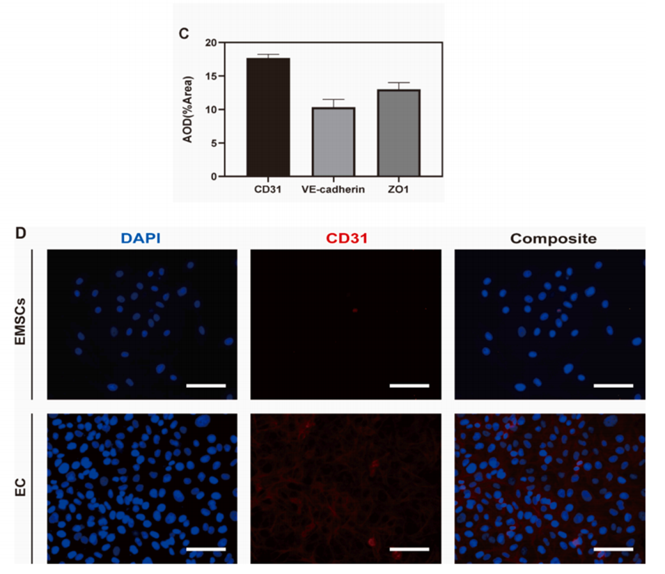 图6.体外诱导EMSCs向内皮细胞(EC)分化。