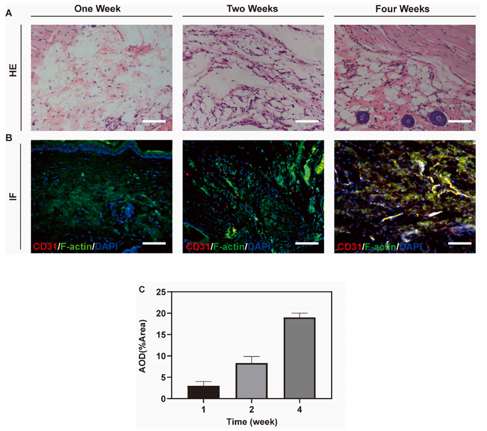 4、体内实验证实,微球可促进新生血管形成和组织整合,提高血管密度。
