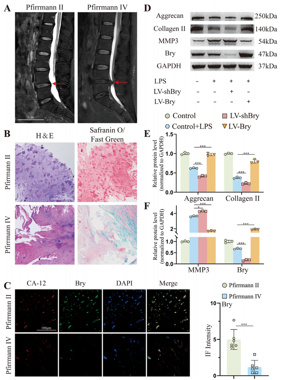 图1.人类退变髓核(NP)组织中Brachyury(Bry)的低表达情况