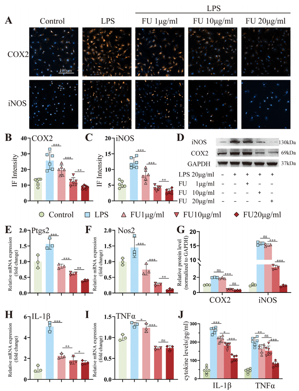 图4.确定岩藻聚糖(FU)的有效抗炎浓度