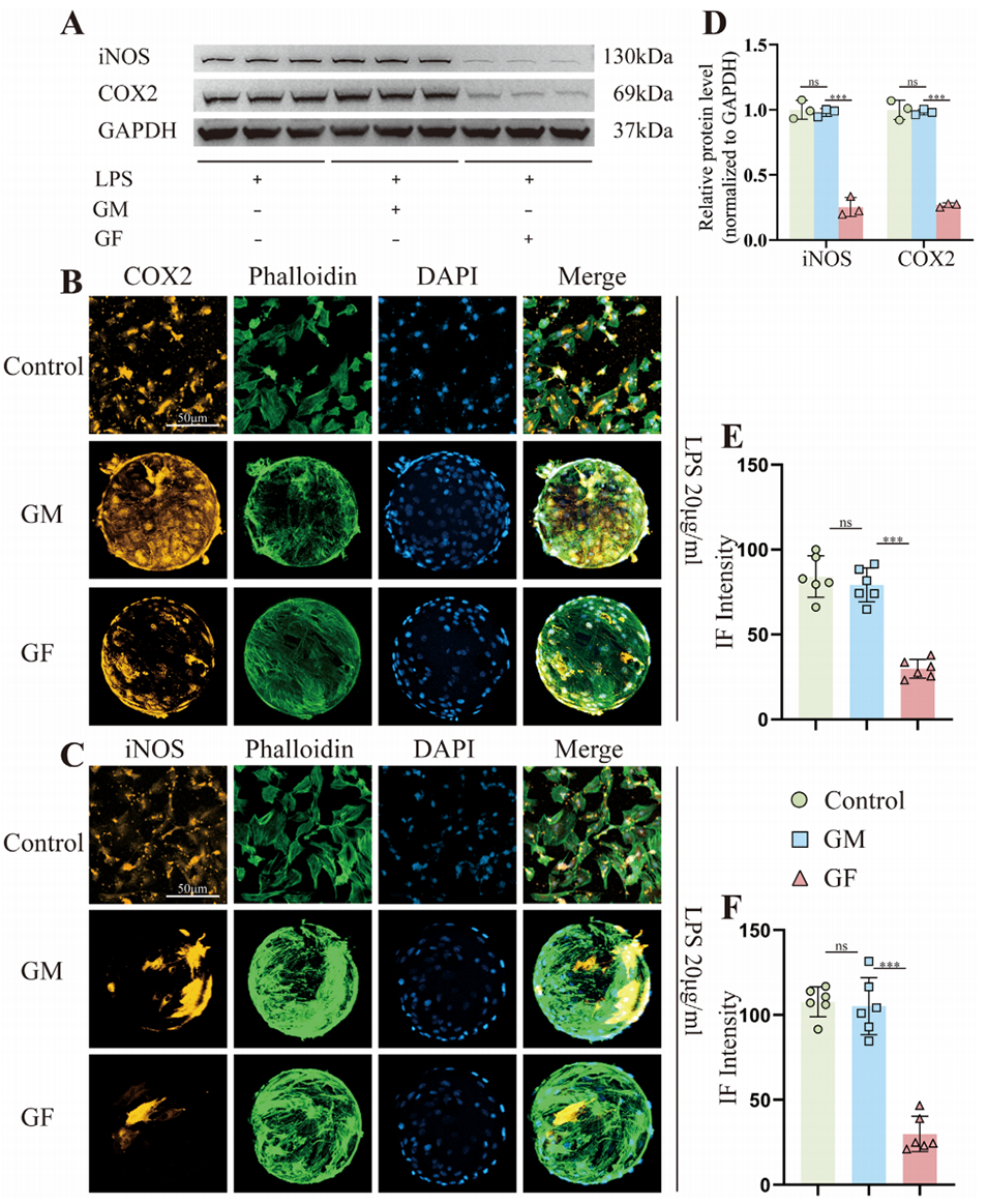图6. GF微球对脂多糖(LPS)处理的大鼠髓核细胞(NPCs)的炎症调控作用评估