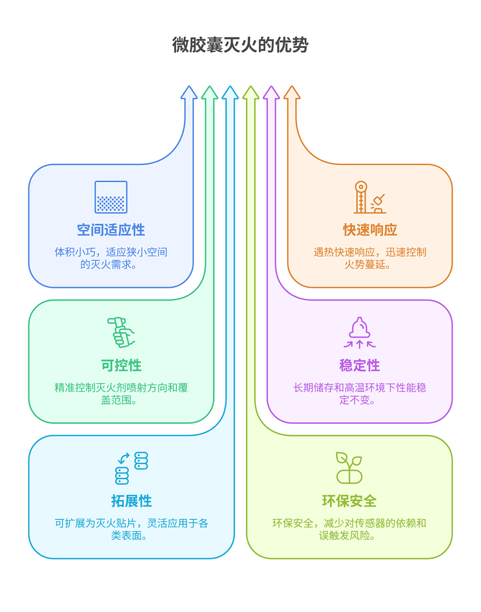 热触发灭火微胶囊(FEMs)的灭火原理基于热响应爆破与灭火剂的双重作用,具体如下: