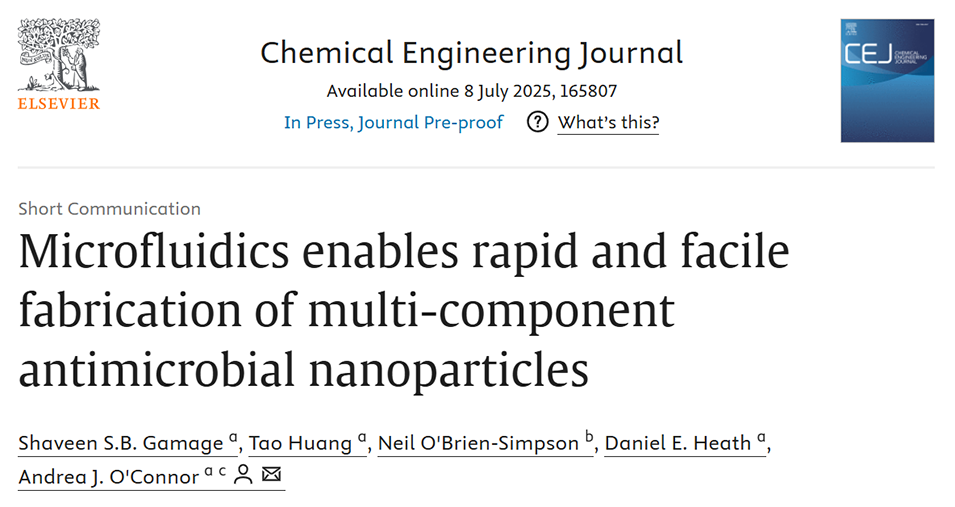 多组分纳米颗粒作为广谱抗菌剂可对抗细菌/真菌感染并抑制耐药性,但其传统批量制备效率低、难以规模化。近期,墨尔本大学格雷姆·克拉克研究所团队开发了一种基于微流控技术的水相制备方法,可快速合成以硒为核心、抗菌肽为涂层的多组分纳米颗粒,其在尺寸、形态及抗菌性能上与传统批量合成产物相当,且制备效率显著提升,易于规模化生产。相关研究以“Microfluidics enables rapid and facile fabrication of multi-component antimicrobial nanoparticles”为题目,发表在期刊《Chemical Engineering Journal》上。