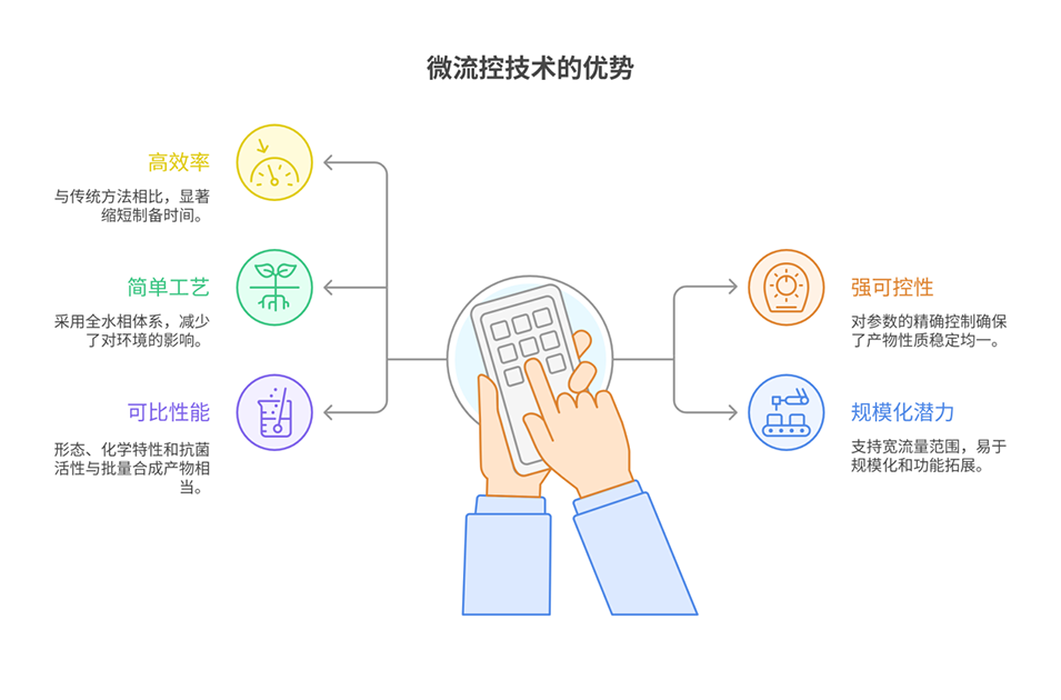 3、该工艺仅需5分钟完成硒纳米核合成、10分钟吸附抗菌肽,总耗时66–76分钟,较批量法缩短69–86%。