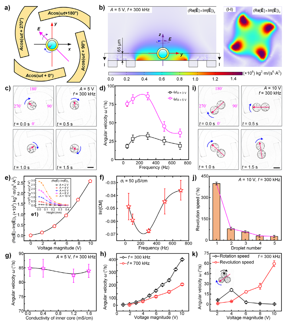 图4.旋转电场作用下的液滴载体旋转操控。