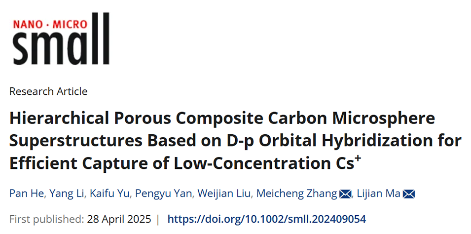 扩散动力学限制会影响多孔材料的吸附性能,分级多孔结构是解决该问题的有效策略之一,但构建有序的宏-微孔分级结构以最大化材料性能仍面临挑战。近期,四川大学化学学院马利建教授、张美成老师等人通过微流控技术自组装纳米级ZIF-8颗粒,成功构建了有序分级多孔碳微球超结构(HPCM),有效克服了扩散动力学限制;进一步引入d轨道电子数不同的过渡金属(Co/Ni/Zn)调控表面微环境,利用d-p轨道杂化增强电荷转移能力,显著提升了对低浓度Cs+的吸附性能。相关研究以“Hierarchical Porous Composite Carbon Microsphere Superstructures Based on D‐p Orbital Hybridization for Efficient Capture of Low‐Concentration Cs+”为题目,发表在期刊《Small》上。