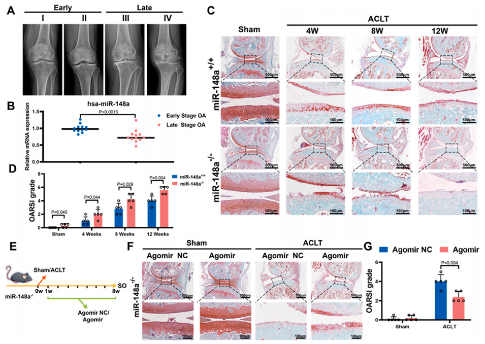 图1. miR-148a在ACLT诱导的骨关节炎中保护软骨退变
