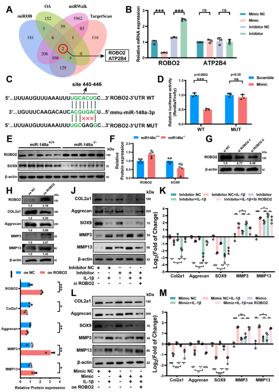 图3. miR-148a通过Robo2促进软骨细胞合成代谢