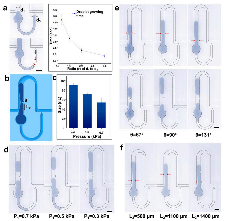 图2.液滴生成微结构的描述及影响气塞形成的因素