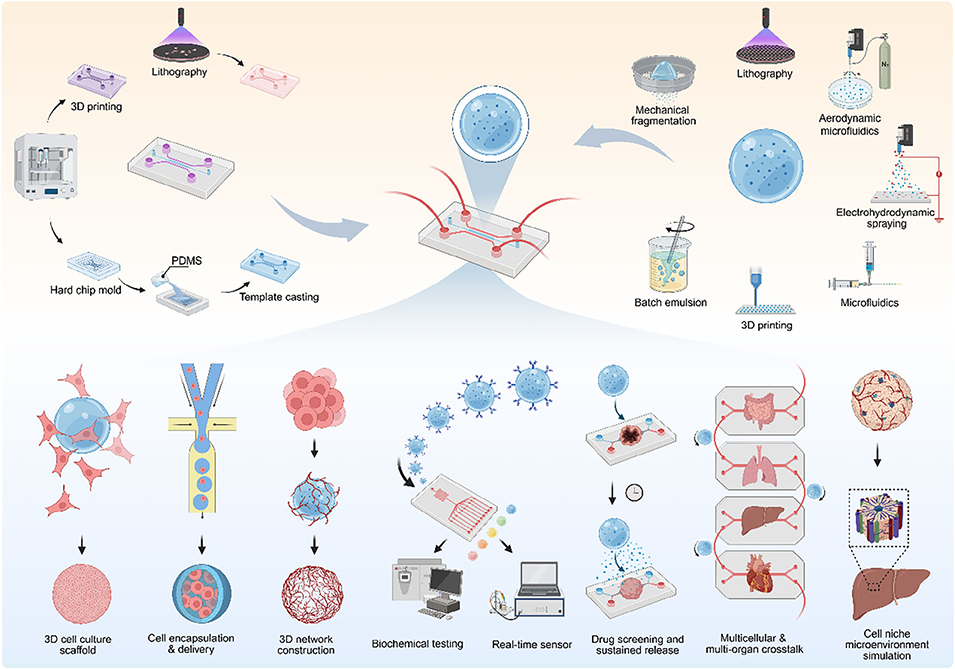 图1.水凝胶微球在器官芯片平台中的整合与应用
