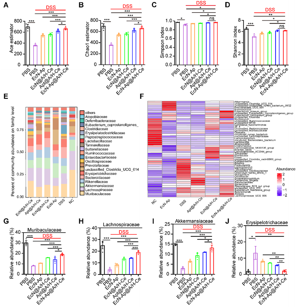 图5. EcN-Ap@A/H-Ce对肠道菌群的调节作用