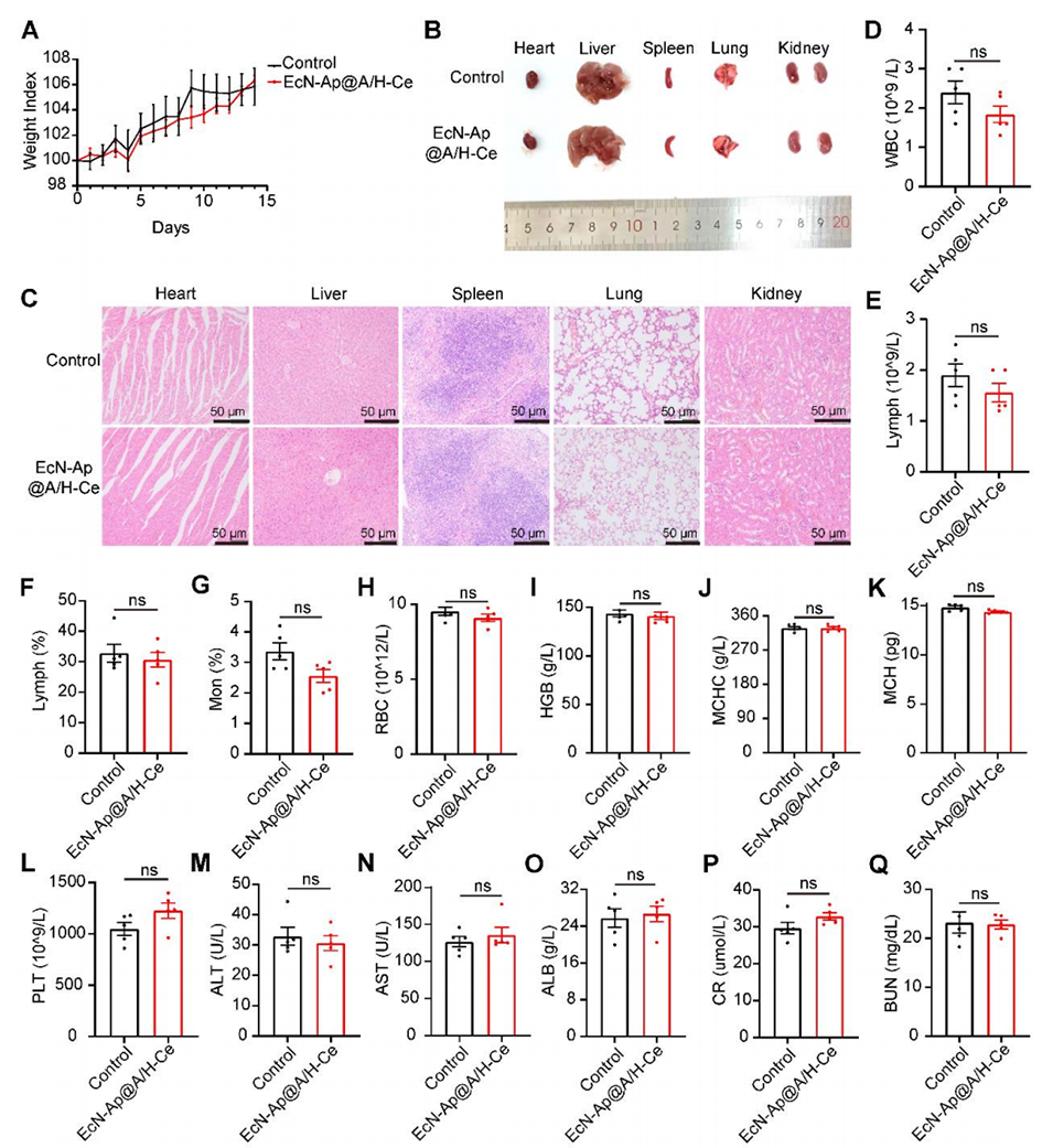 图8. EcN-Ap@A/H-Ce的体内生物安全性评价