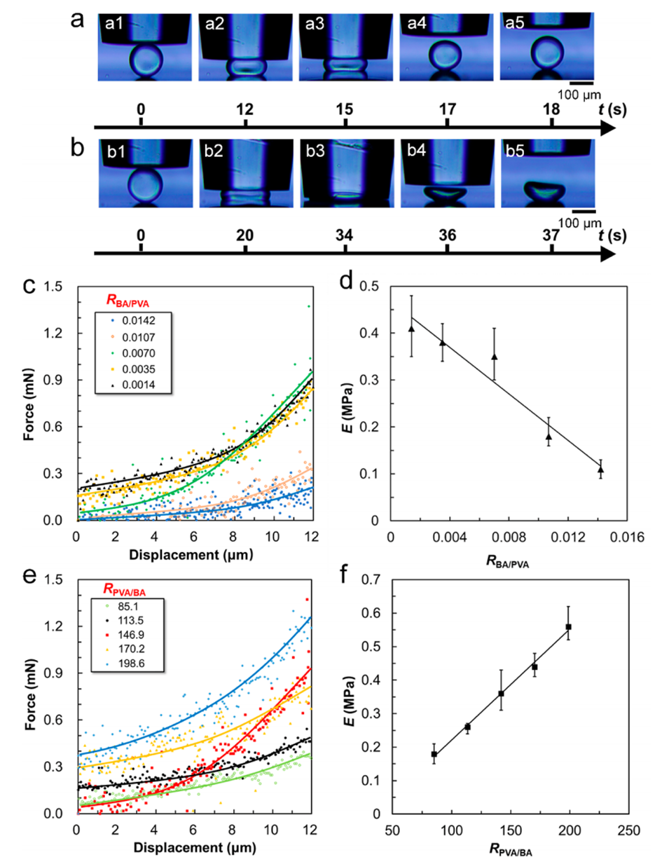 图 9. PVA与硼酸的比例(RBA/PVA)对交联PVA微球弹性性能的影响。