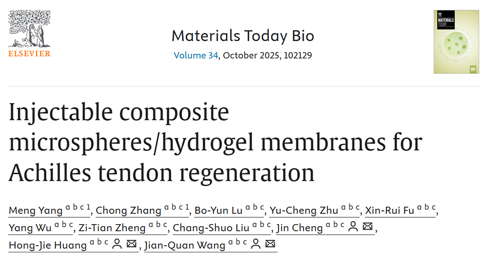 1、本研究设计了一种可注射复合微球/水凝胶膜体系,用于促进损伤跟腱再生。