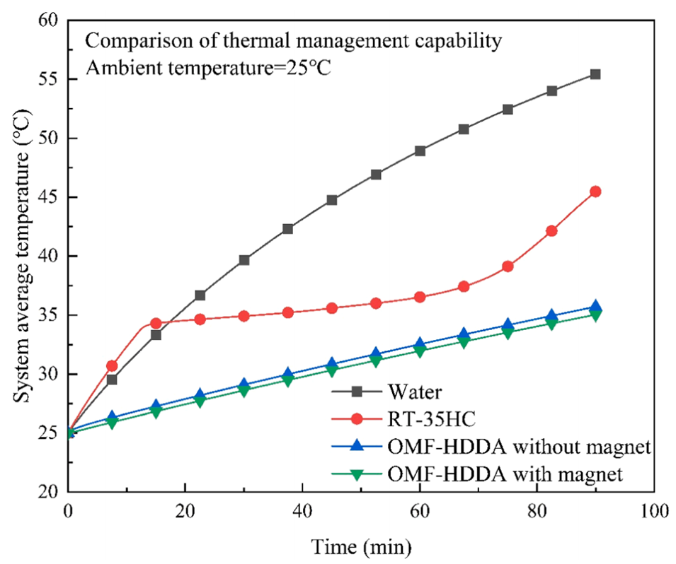 图11. 含四种填充材料的系统的热管理能力。