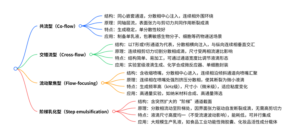 微流控设备中四种典型液滴发生器类型