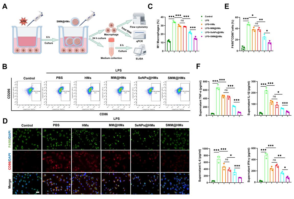图 4:SMM@HMs 通过靶向递送抑制巨噬细胞 M1 型极化