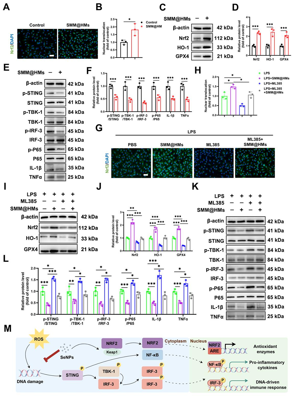 图 5:SMM@HMs 通过激活 Nrf2/GPX4 轴抑制 STING 通路