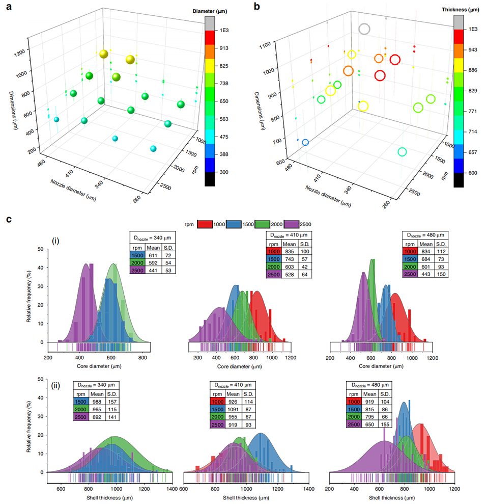 生物聚合物核壳微球在药物递送、组织工程和诊断等各类生物医学应用中发挥着关键作用。这些应用要求微球具备尺寸稳定可控、形状精度高的特性,然而,实现尺寸与形状可控的核壳型生物聚合物微凝胶的高通量合成仍是一大难题。