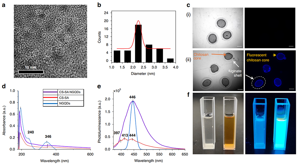 图 5 氮功能化石墨烯量子点(NGQDs)及其使核壳微球具备发光特性的作用