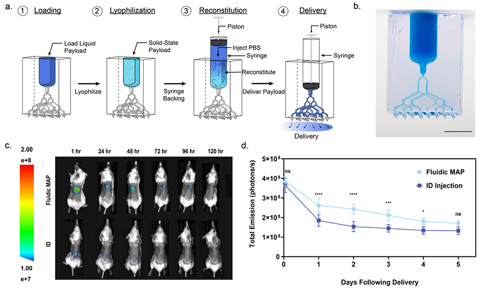 图6. 使用微流控MAP经皮递送固态冻干有效载荷。