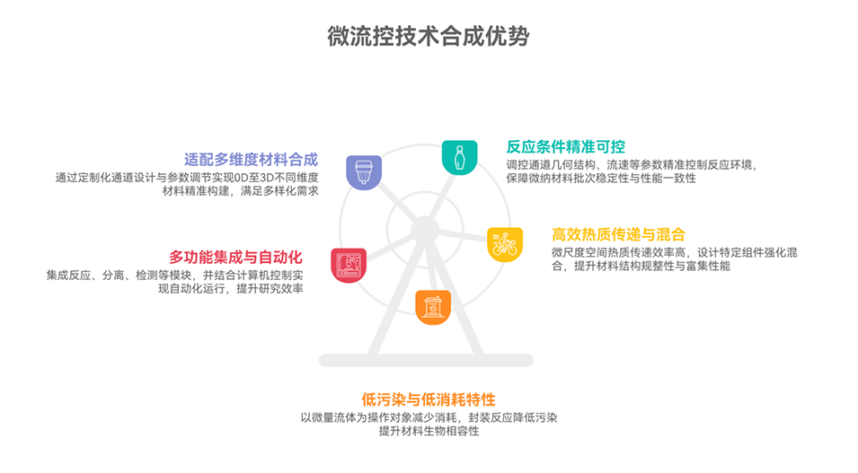 2、系统总结了该技术驱动下零维至三维微纳材料的合成,重点探讨了微流控在材料结构设计与性能调控方面的优势。