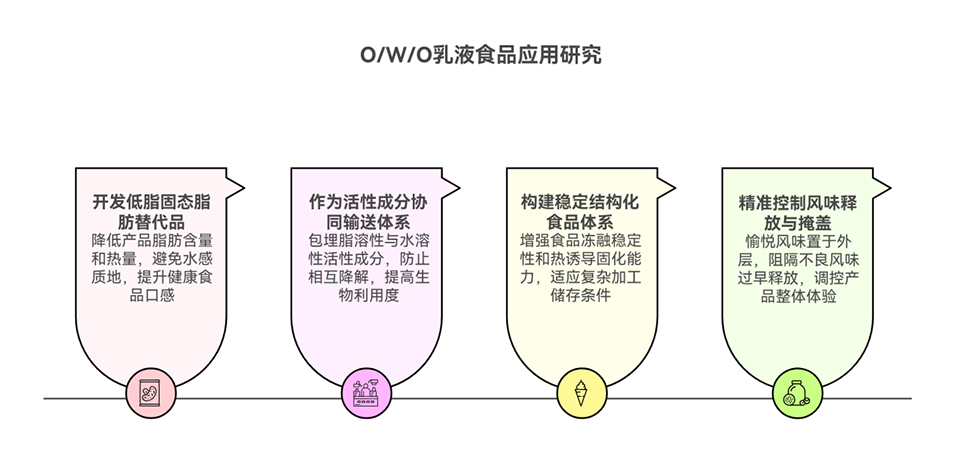双乳液(如O/W/O、W/O/W)因能同时包封两亲性生物活性成分,在功能性食品、药品和化妆品等领域展现出重要的应用潜力。然而,其双膜三相结构也导致了高界面自由能,使体系热力学不稳定,难以长期维持。目前,该领域的研究多集中于W/O/W型乳液,而对O/W/O体系的研究相对较少。此外,O/W/O乳液在温和条件下能否实现结构转化,以及经历冻融循环后其结构完整性如何保持等问题,仍有待进一步探究。