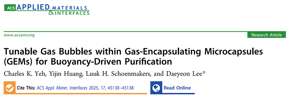受水生微生物利用气体囊泡调节浮力和植物在干旱条件下发生空化现象的启发,宾夕法尼亚大学化学与生物分子工程系Daeyeon Lee教授团队开发了一种新型气体封装微胶囊(GEMs),通过渗透压诱导空化在其内部形成尺寸可精确调控的气泡,并利用该气泡所提供的浮力实现了对完整微胶囊的高效、高纯度分离。该策略无需标记即可从缺陷微胶囊和聚合物碎片中分选目标微胶囊,为药物递送、超声诊疗等应用提供了新型仿生材料平台。相关研究以“Tunable Gas Bubbles within Gas-Encapsulating Microcapsules (GEMs) for Buoyancy-Driven Purification”为题目,发表在期刊《ACS Applied Materials & Interfaces》上。