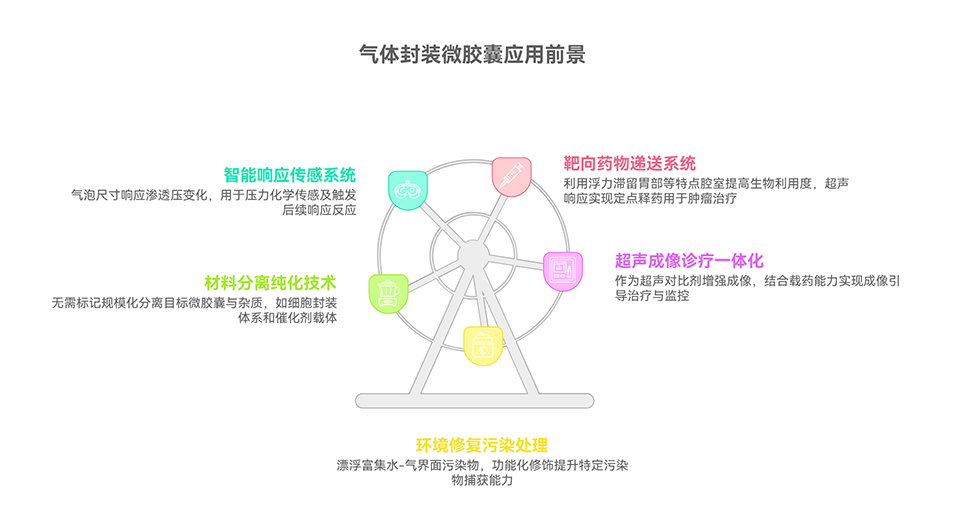 7、未来可通过降低微胶囊核心盐浓度,使气泡在生理条件下保持稳定,还可探索包裹其他气体用于治疗性气体递送。