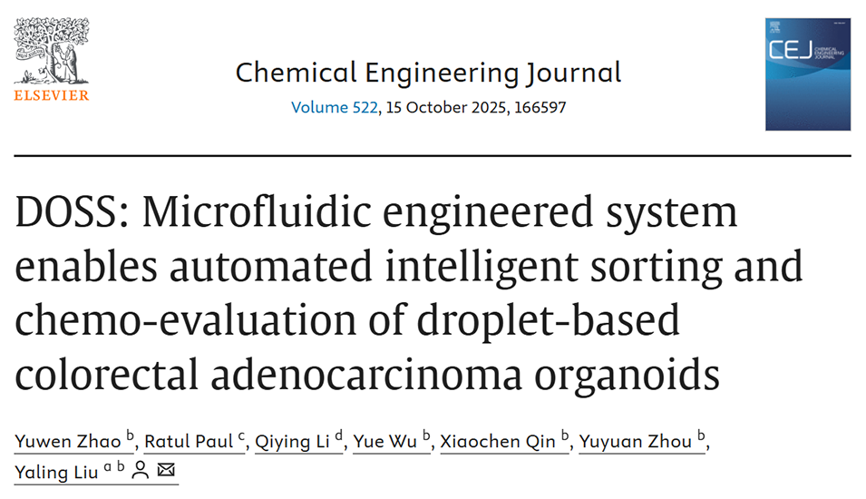鉴于此,四川大学华西医院精准医学转化研究中心刘亚龄教授团队联合美国里海大学科研团队,开发出一种名为DOSS的集成微流控系统,该系统可实现结直肠癌类器官的自动化智能分选与药物评估,通过液滴封装保留类器官形态多样性,并借助机器学习精准分类不同形态亚群以挖掘其药物反应差异。相关研究以“DOSS: Microfluidic engineered system enables automated intelligent sorting and chemo-evaluation of droplet-based colorectal adenocarcinoma organoids”为题目,发表于期刊《Chemical Engineering Journal》。
