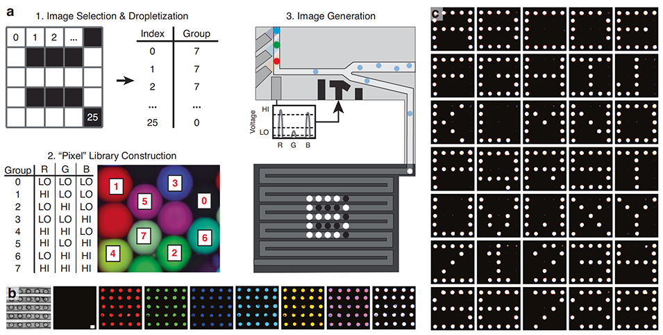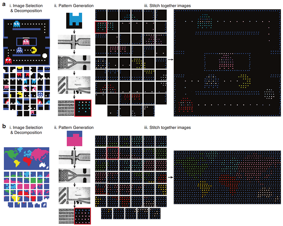 图6. 借助软件引导的液滴像素阵列生成大型马赛克图像
