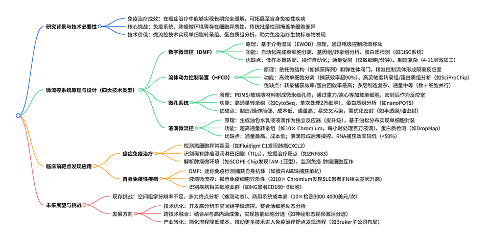 免疫治疗虽在癌症和自身免疫病治疗中成效显著,但免疫系统、肿瘤微环境等存在的细胞异质性,使传统批量检测难以精准解析疾病机制,而微流控技术能实现单细胞水平的转录组、蛋白质组分析,为免疫治疗新生物标志物发现提供关键支持。
