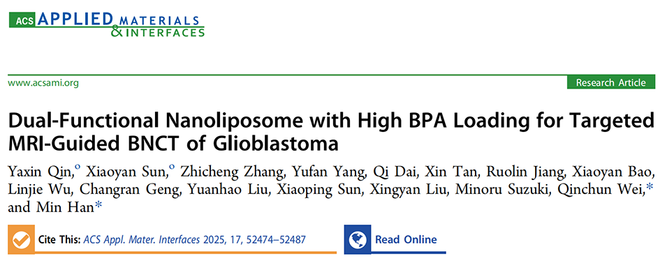 近期,浙江大学魏启春教授、韩旻副教授团队成功开发了一种新型双功能纳米脂质体。该载体能高效装载硼药物BPA,并整合MRI造影剂,通过Angiopep-2肽的修饰实现精准靶向胶质母细胞瘤,在动物模型中显著提升了硼中子俘获疗法的疗效并实现了治疗过程的磁共振实时可视化。相关研究以“Dual-Functional Nanoliposome with High BPA Loading for Targeted MRI-Guided BNCT of Glioblastoma”为题目,发表在期刊《ACS Applied Materials & Interfaces》上。