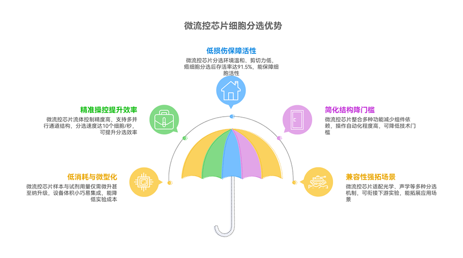 分选过程依赖微流控芯片中的流体动力(主要是流体拖曳力 Fv)实现细胞的定向移动。芯片内的样品流与鞘流形成稳定层流,细胞随样品流进入分选区域(如喉部结构)时,会受到鞘流带来的流体拖曳力(公式 Fv=3πμdΔv,μ 为流体黏度,d 为细胞直径,Δv 为细胞与鞘流的相对速度)。对于目标细胞,其受的光学梯度力足以克服流体拖曳力,使其从样品流偏转至鞘流;非目标细胞因光学梯度力弱,无法对抗拖曳力,只能随样品流进入废液通道。