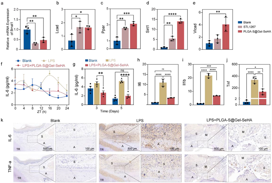 图4:PLGA-S@Gel-SeHA靶向REV-ERBs调控LPS诱导的牙周炎症