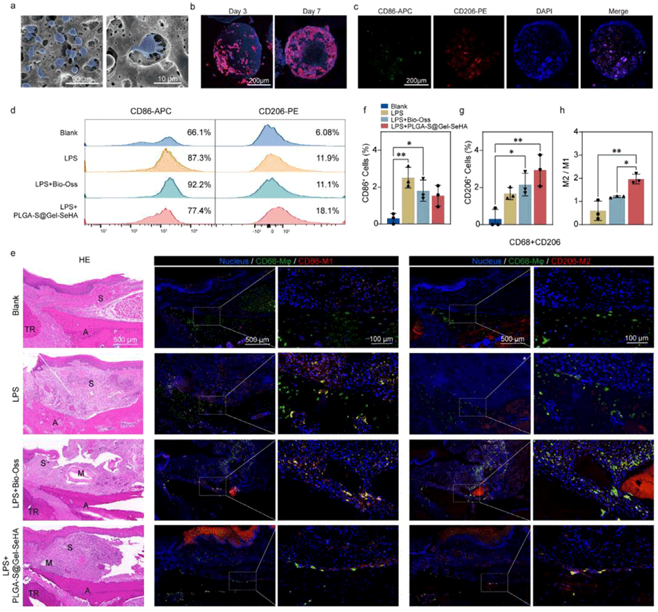 图5:PLGA-S@Gel-SeHA调控巨噬细胞的黏附与极化