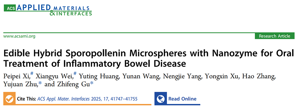 近期,南通大学附属医院顾志峰教授、朱玉娟研究员团队针对上述难题,构建了负载氧化铈纳米酶的食用杂化孢子花粉素微球口服给药系统,该系统可实现药物在肠道的靶向释放与持续作用。相关研究以“Edible Hybrid Sporopollenin Microspheres with Nanozyme for Oral Treatment of Inflammatory Bowel Disease”为题,发表于期刊《ACS Applied Materials & Interfaces》。