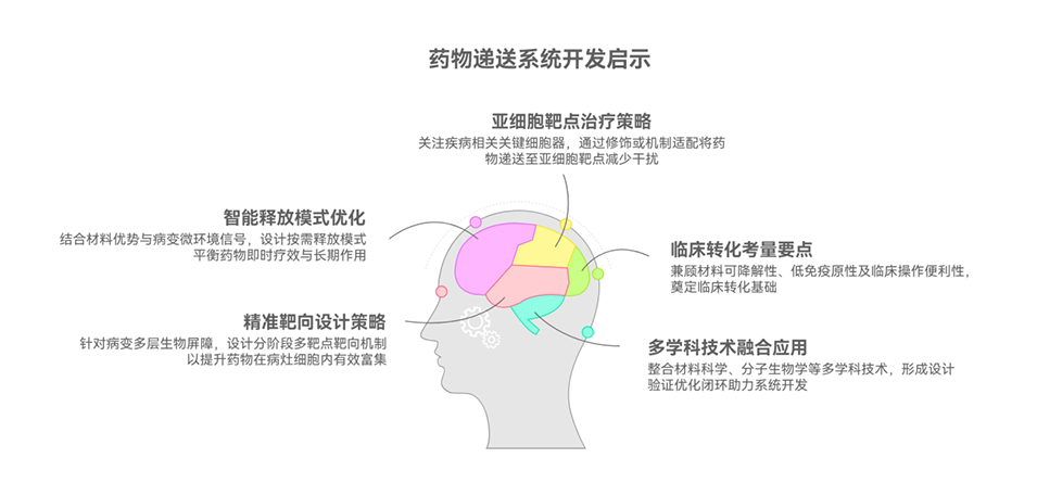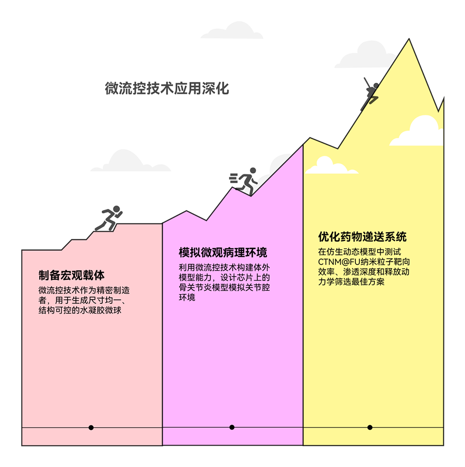 现有层级微纳结构递送系统虽为组织再生提供可能,但常忽略细胞内化、溶酶体逃逸等关键环节;海洋多糖褐藻糖胶虽能模拟细胞外基质(ECM)、激发内源性抗氧化特性,但其从糖肽组装水凝胶中的释放缺乏细胞和细胞器选择性,易在细胞摄取前被不受控消耗,因此亟需构建可响应微环境、实现时空释放的精准药物递送系统,以突破OA治疗瓶颈。