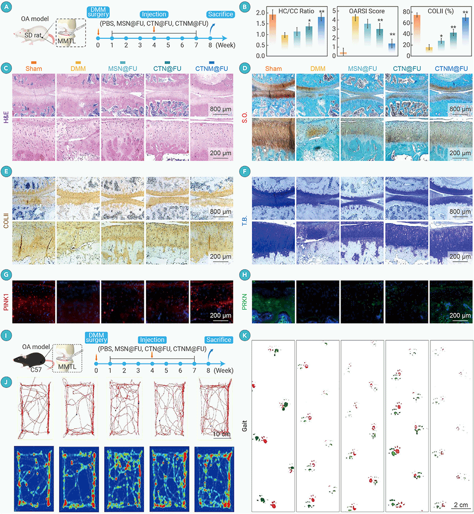 图4. CTNM@FU在手术诱导的创伤后骨关节炎(OA)模型中减轻软骨退变