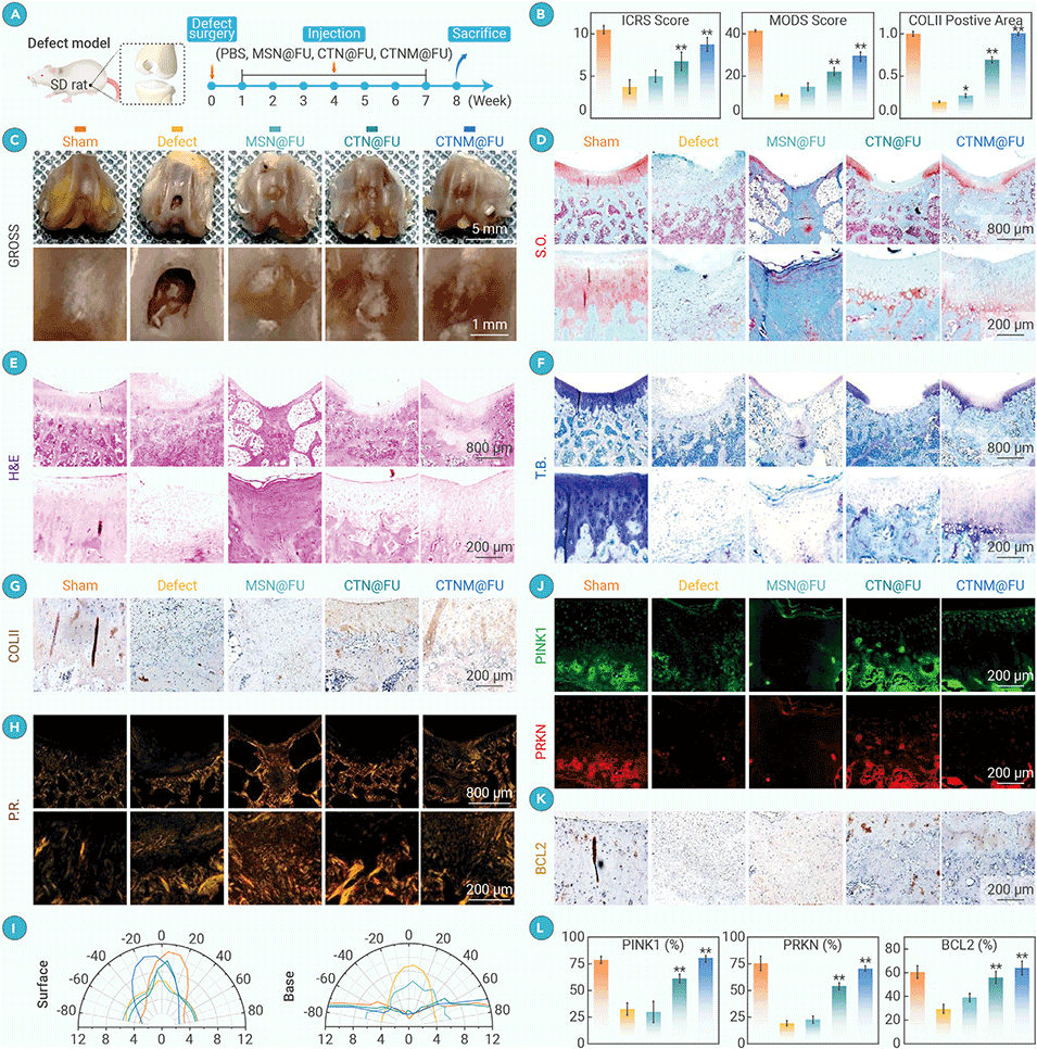 图5. CTNM@FU在全层软骨缺损模型中促进软骨再生