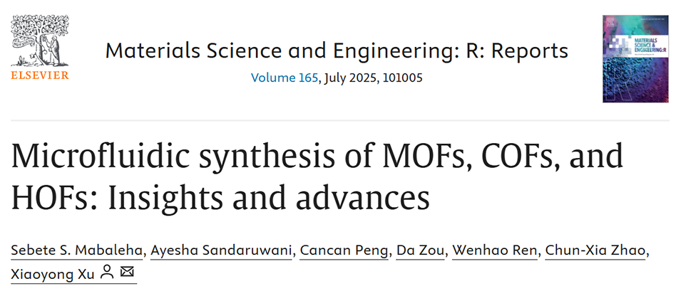 近期,阿德莱德大学化学工程学院研究团队发表综述,系统阐述了MOFs、COFs和HOFs的微流控合成,涵盖了微流控技术基础、反应器设计、合成化学、关键变量调控以及该路线的技术-经济-环境效益,并展望了其绿色工业化生产的未来方向。相关研究成果以“Microfluidic synthesis of MOFs, COFs, and HOFs: Insights and advances”为题目,发表于期刊《Materials Science and Engineering: R: Reports》。