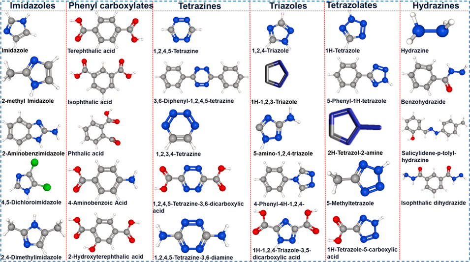 图7. MOFs、COFs及HOFs合成中使用的有机连接体类别