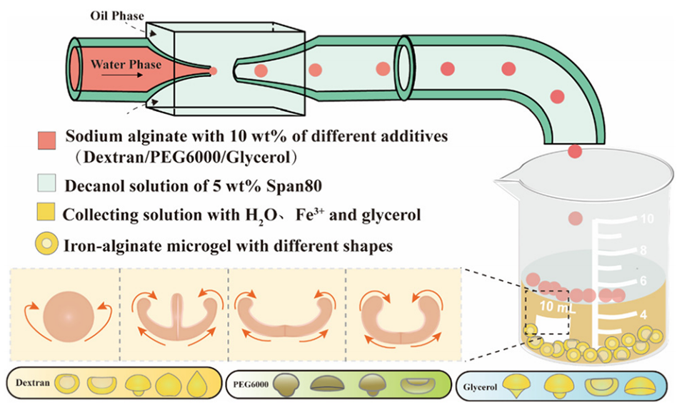 传统基于微流控的海藻酸盐微凝胶形貌调控多关注装置设计与交联介质参数,对液滴自身成分的影响研究较少。非球形水凝胶微颗粒(NSHPs)因高比表面积、强细胞黏附性等优势,在生物医学领域需求渐增。