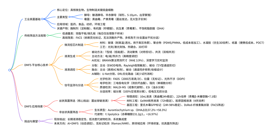 1、本文探讨了液滴微流控技术(DMFS)在工业真菌高通量筛选中的变革潜力。