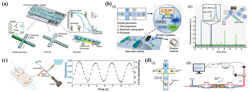 2、阐述了微流控芯片制造、液滴生成与调控及荧光、拉曼光谱、质谱等多模态信号检测的关键进展