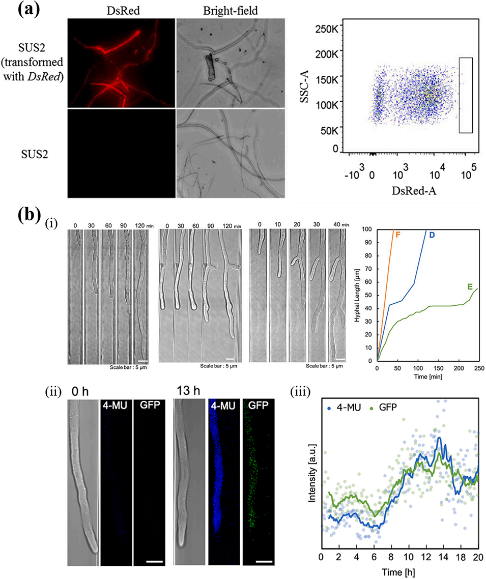 图10. 通过基因修饰等整合策略优化菌丝生长并用于真菌液滴微流控高通量筛选的示意图