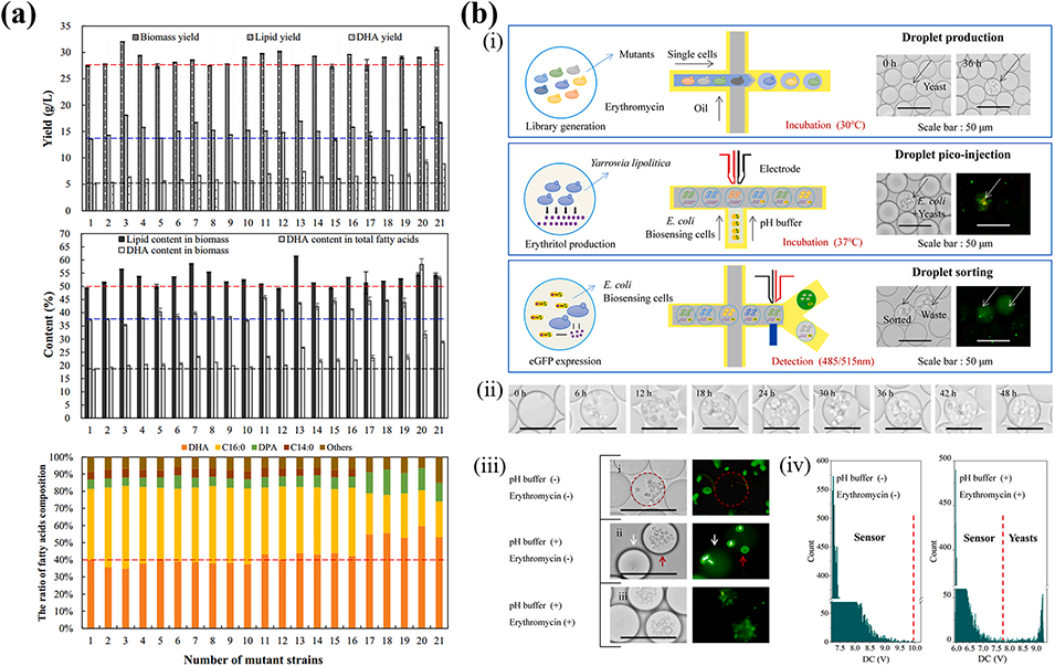 图11. 液滴微流控用于高产不饱和脂肪酸及赤藓糖醇的工业真菌高通量筛选的示意图