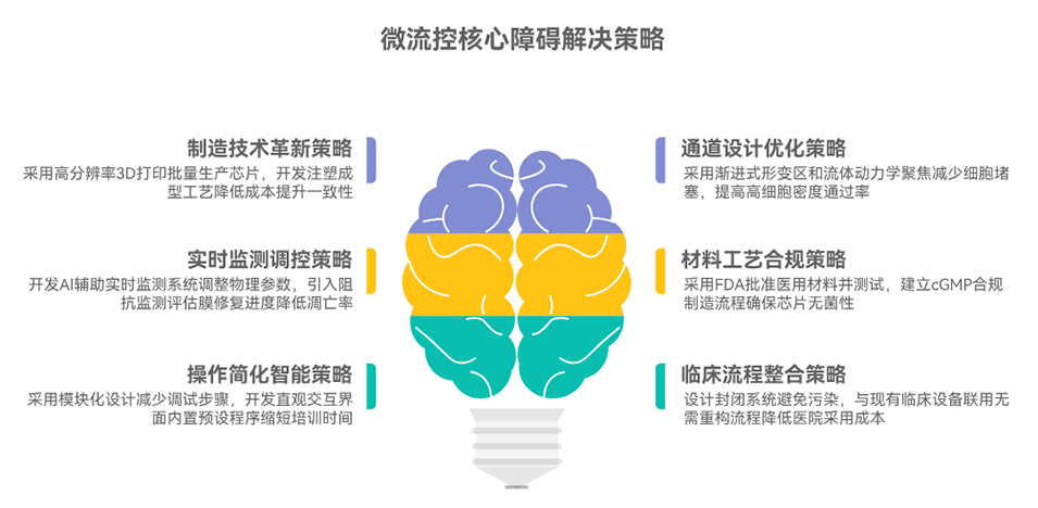 3、同时分析了微流控芯片核心材料与微通道设计的影响,指出当前面临规模化制造、效率-细胞损伤平衡及FDA监管审批等挑战,展望了AI/深度学习优化参数、3D打印规模化及CAR-T制备等临床转化方向。
