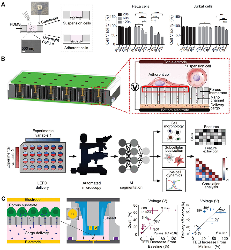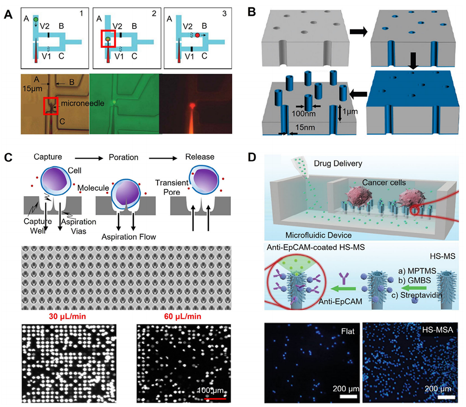 图9:结合纳米孔电穿孔的微流控胞内递送平台示意图
